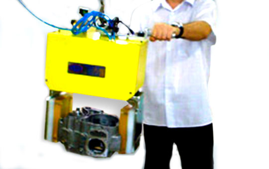 Projetado para manipular blocos de motores de moto, este dispositivo Seman, fabricado em estrutura tubular de aço, pode ser montado diretamente em um balancim pneumático, ou braço mecânico, para viabilizar a movimentação do produto manipulado.